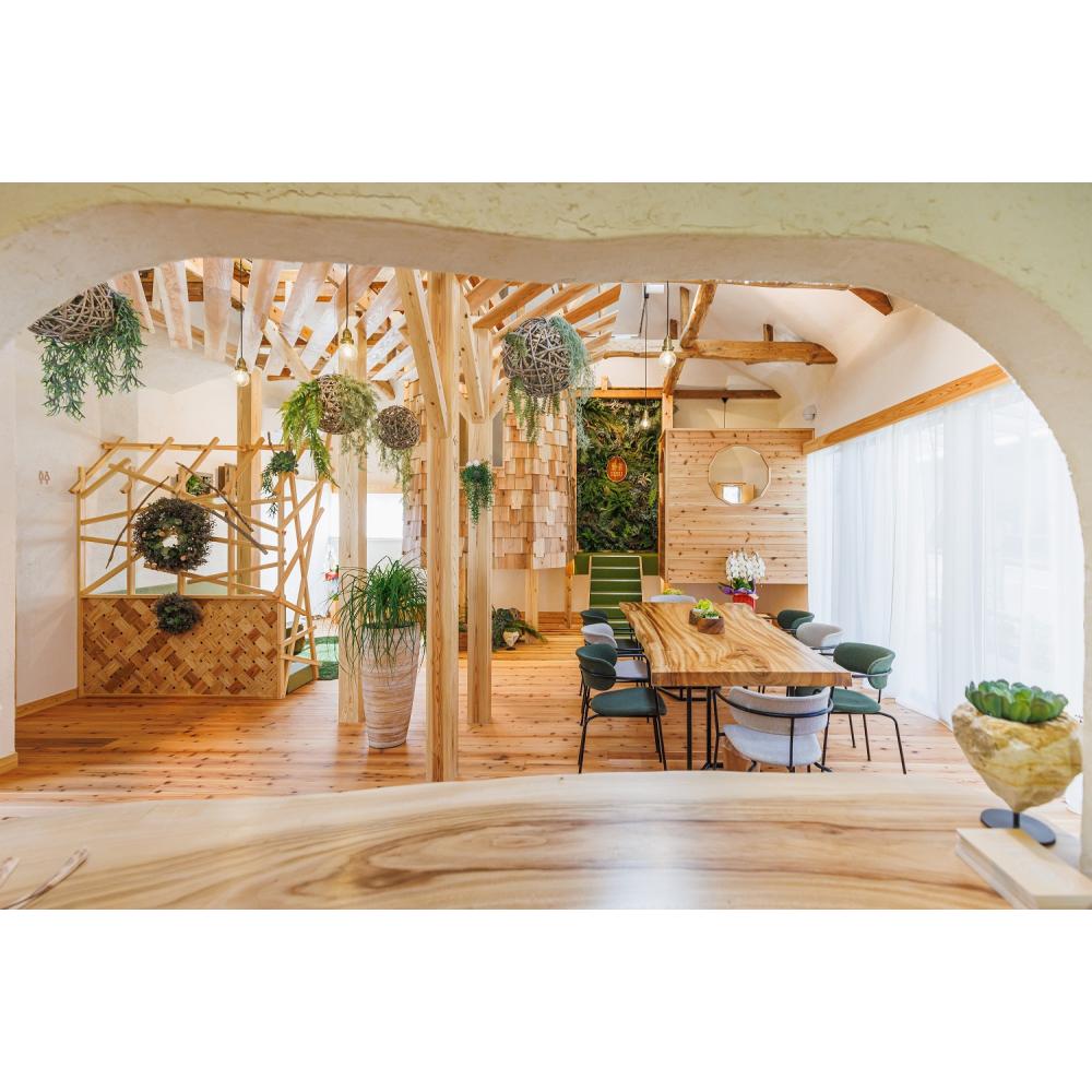鳥の巣をイメージしたデザイン、この中では自分の素に戻れる場所を創造しました!